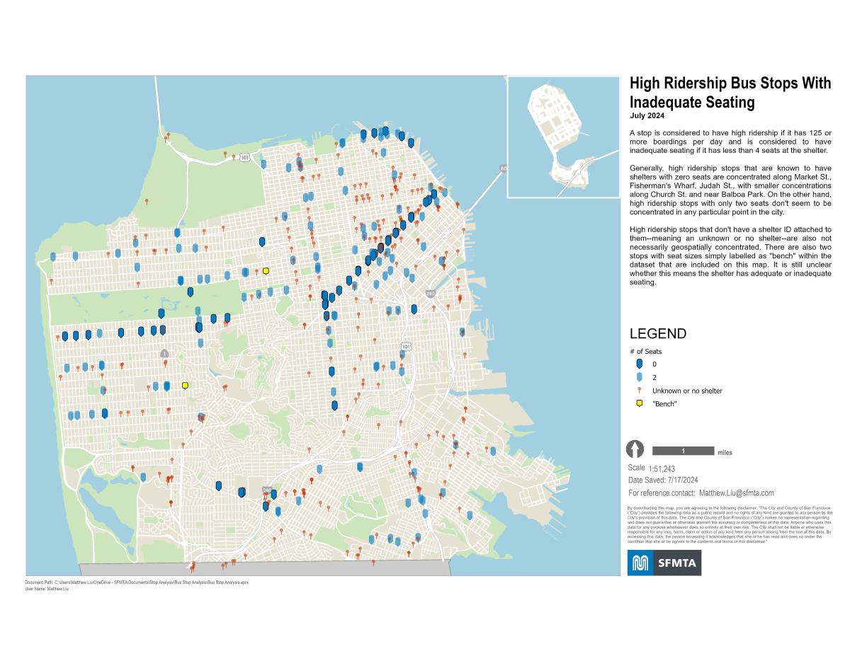 Figure 9. Map of High Ridership Bus Stops with Inadequate Seating