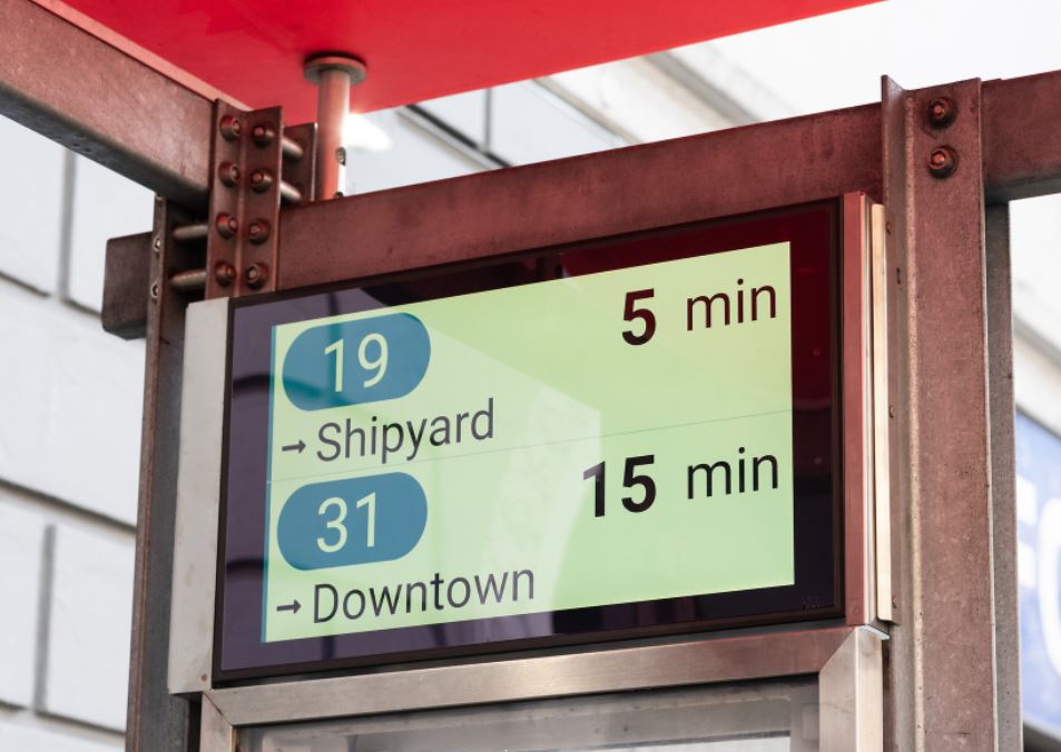 Preliminary design of the shelter display indicating estimated vehicle arrival time and route destination.