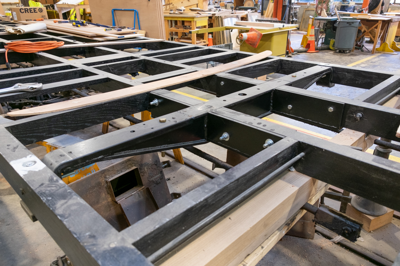 Many of the framing parts were made while the Carpentry Shop awaited repairs and parts on the bolster and tension rods, allowing for the framing work to progress relatively quickly.