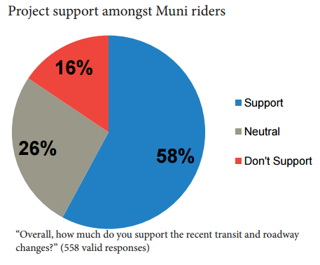 - Over 75 percent of respondents (and 84 percent of identified Muni riders) supported or felt neutral about the project.