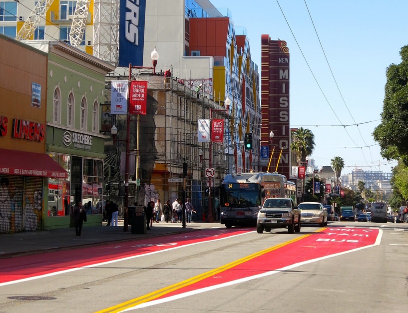 The original changes, which included red transit-only lanes and required right turns to make Mission safer and work better for Muni, were developed after nearly a year of community outreach (.pdf) in 2015, which included several open houses, door-to-door canvassing of every merchant along the project corridor, dozens of meetings with over 30 different neighborhood groups and several multilingual surveys conducted online and in person.