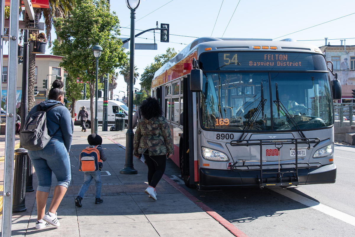 Photo: 54 Felton bus serving the Bayview and several other equity neighborhoods from Hunters Point to Daly City BART