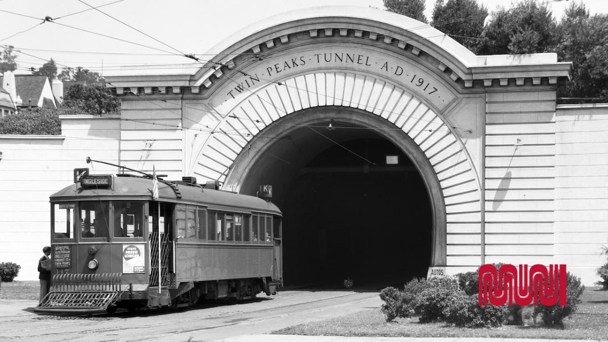 Historic image that shows K street car emerging from Twin Peaks tunnel