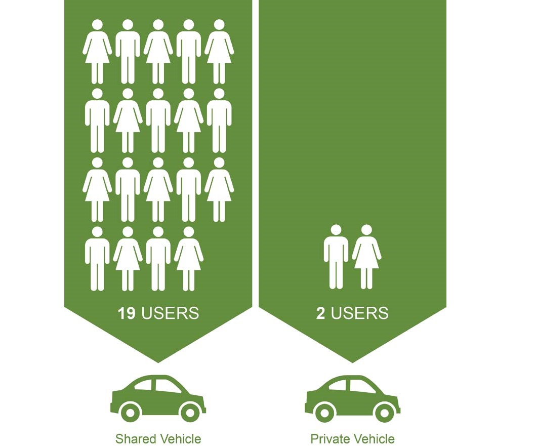 The answer to the earlier question, by the way, is 19. That’s the average number of different people who use a car-share vehicle each month. Some cars are driven regularly by as many as 50 people.