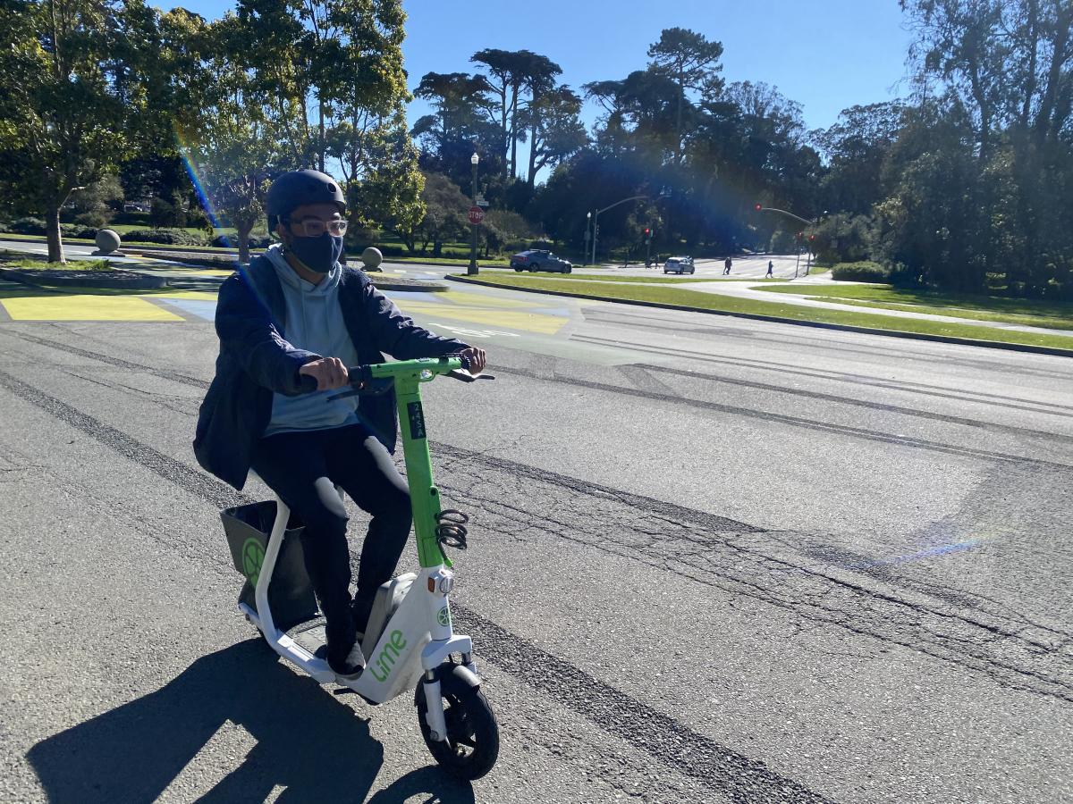 Rolling through Golden Gate Park on a shared scooter.