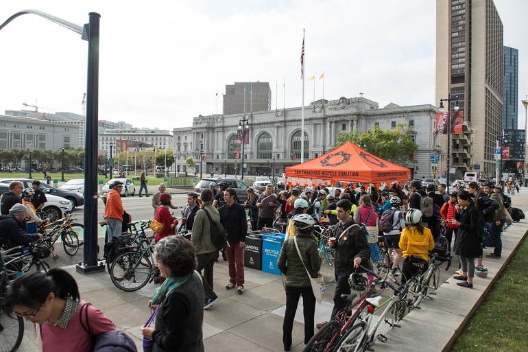 We hope you enjoyed yesterday’s Bike to Work Day as much as we did. Per the annual tradition, we were once again joined by supervisors, our partner agencies and the SF Bicycle Coalition in rides from around the city which convened in front of City Hall.