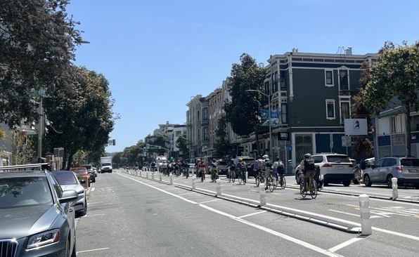 At the six-month mark, results showed improvement in bicyclist safety from the previous bikeway on Valencia. That design had a painted bikeway placed between moving and parked vehicles.