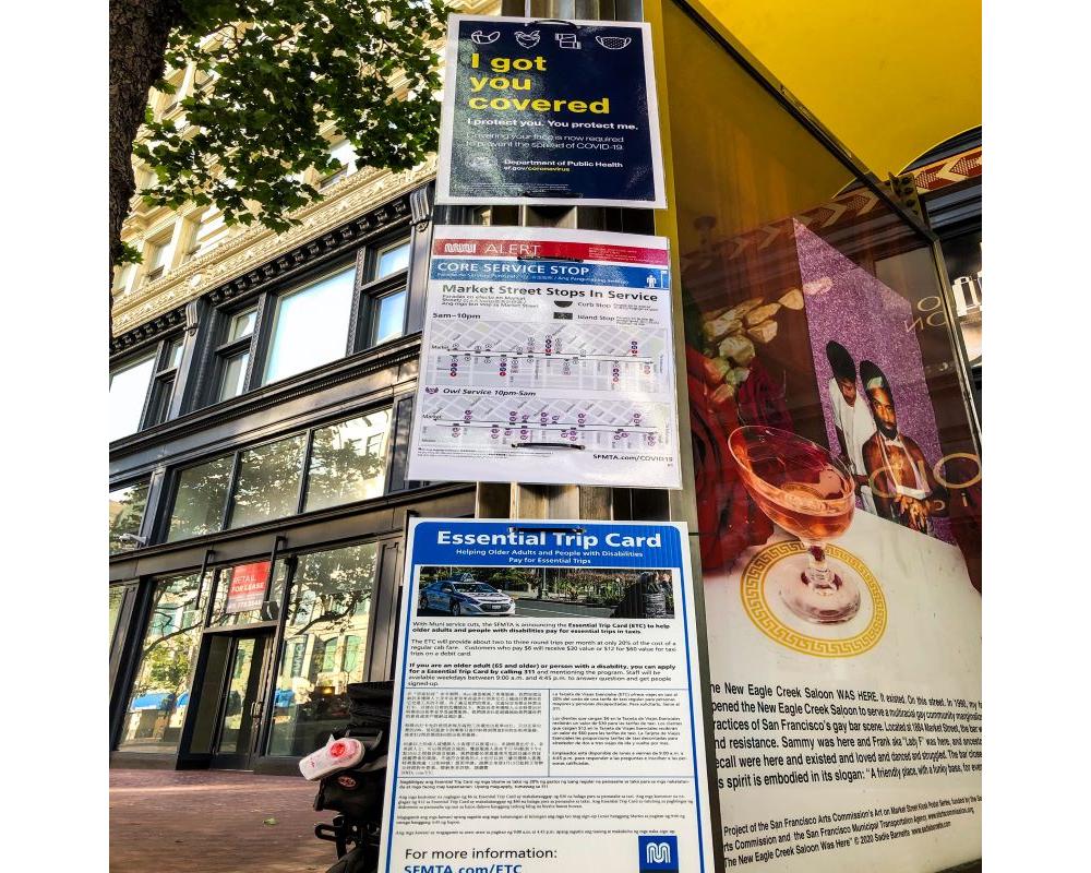 - Multilingual onboard audio announcements and PSA car cards, social media campaigns, and a dedicated website at SFMTA.com/COVID19