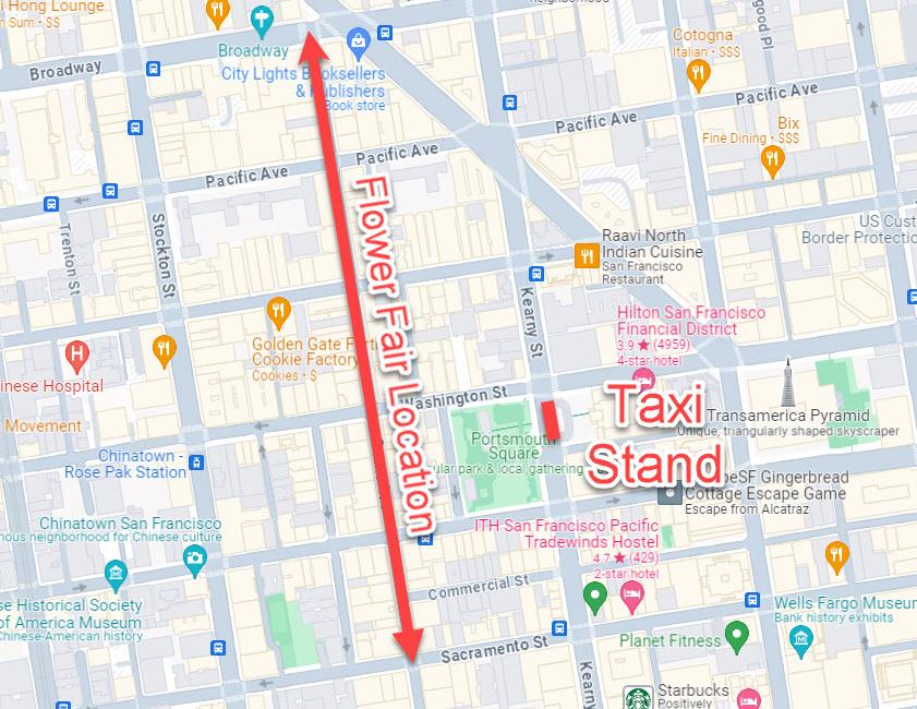 The taxi stand located at the Hilton San Francisco Financial District Hotel (750 Kearny) will allow taxis to serve the event.
