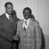 In the 1970s, Muni General Manager Curtis Green, on left, demonstrates a Muni Fast Pass with SF Supervisor Harvey Milk, on right. Image M2480_2 from the SFMTA Photo Archive.