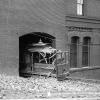 On the morning of April 18, 1906, Cable Car 155 was damaged by falling bricks and debris in the doorway of the cable car house on Washington Street just east of Mason Street. This building, known as the Washington Mason Cable Car House and Powerhouse, was rebuilt after the 1906 earthquake and is now a National Registered Landmark. Today, it is the site of the Cable Car Museum, and it still serves as the headquarters for cable car operations, including storing cable cars and powering cable machinery. Image U00776 from the SFMTA Photo Archive.