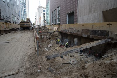 Work to excavate the station headhouse is underway at 4th and Clementina Alley Overview