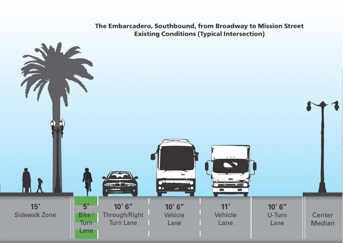 The near-term safety improvements have independent value but help complement the longer-term Embarcadero Enhancement Project, which is prioritizing and designing more significant capital investments to The Embarcadero, including a two-way, physically-protected bikeway on the water-side of the corridor between North Point and Townsend streets.