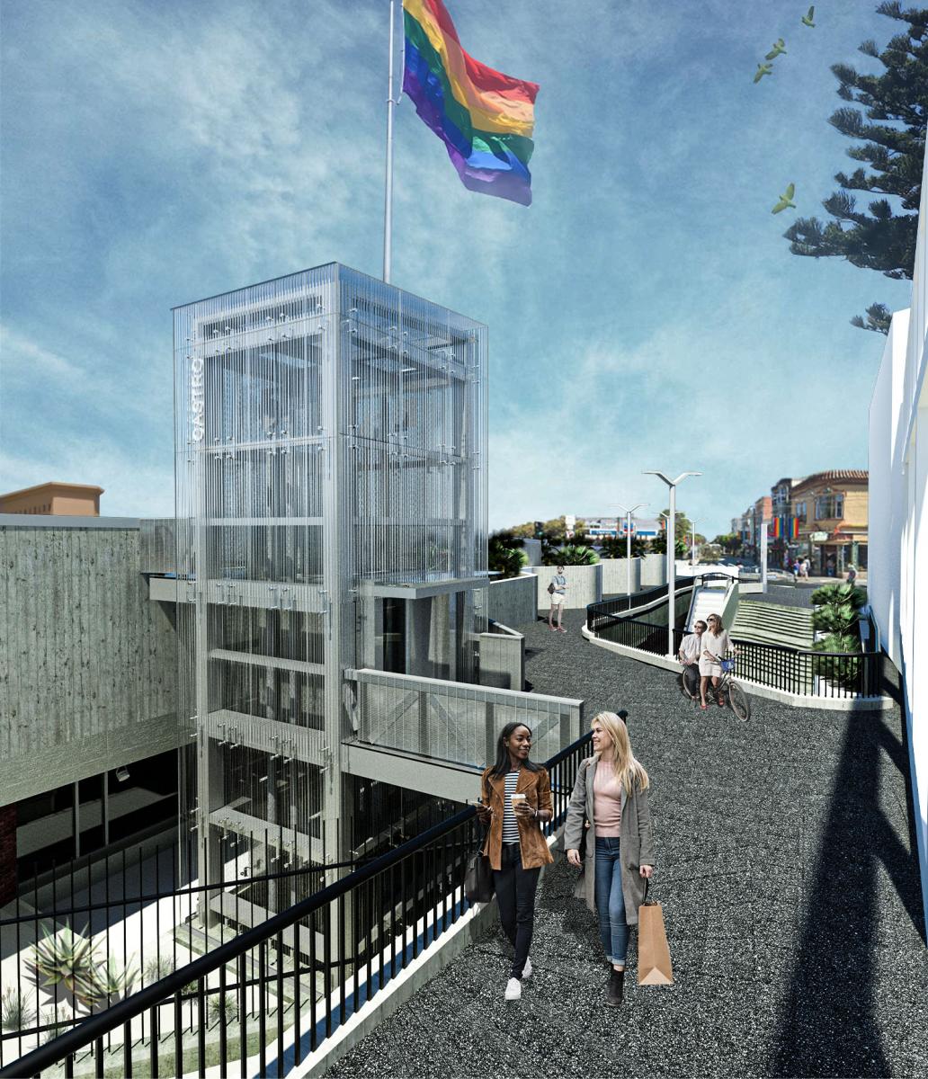 Level 3 - Harvey Milk Plaza view The elevator will provide service to the Harvey Milk Plaza level where people can enjoy the environment. The project team is continuing to work with San Francisco Public Works and with The Friends of Harvey Milk Plaza in the design phase of this project. To find out more, visit Friends of Harvey Milk Plaza at: www.friendsofharveymilkplaza.org/newdesign |