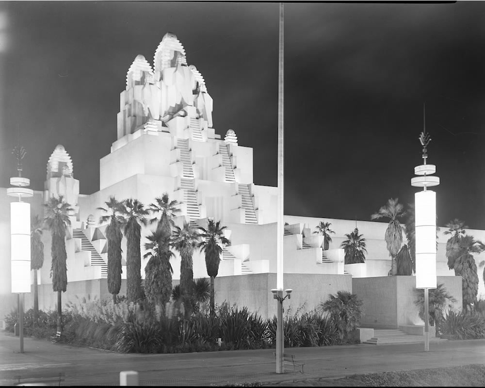 The centerpiece of the fairgrounds was the 400-foot tall "Tower of the Sun", which was illuminated nightly by powerful searchlights.